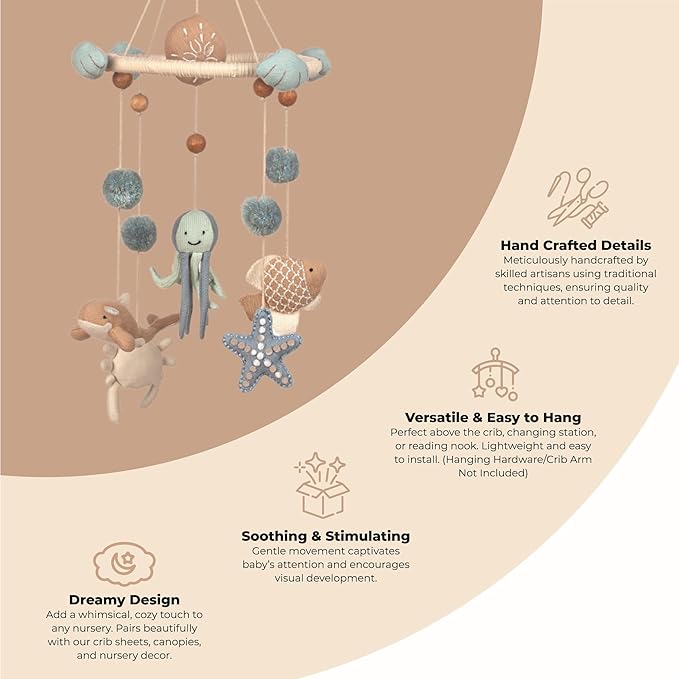 • Engaging Sea Life Adventure - Our crib ceiling hanging for boys and girls brings the serenity of ocean nursery decor to your baby's space, featuring adorable sea life animals that captivate and entertain