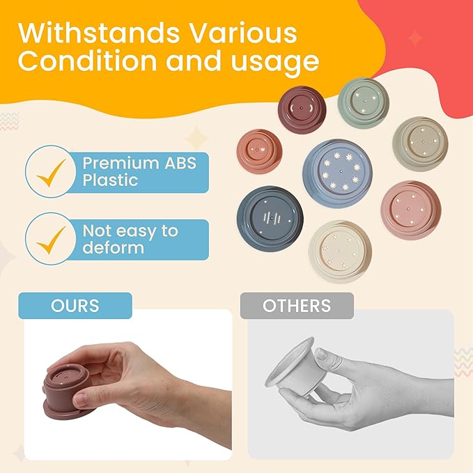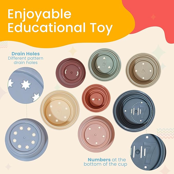 • VERSATILE PLAYTIME - Our stacking cup toy set presents endless play opportunities! They're not just for stacking - your child can integrate these kids stacking cups with sand-play, water-play, and more.