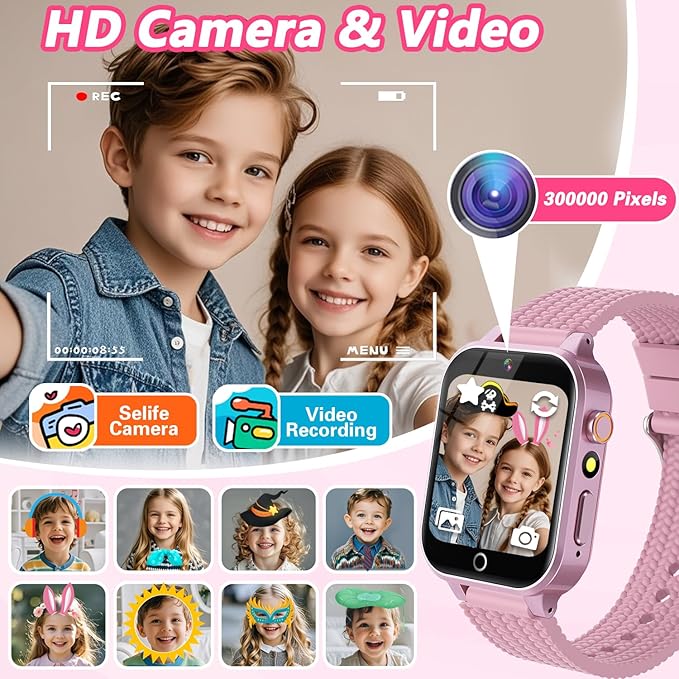 • 【Powerful Battery Life】Get ready for endless fun with kid smart watches that equipped with a 500mah rechargeable battery. Without frequetn charging,the long-lasting kids smartwatch can run for more than seven days on a single charge. It includes a Type C cable for convenient charging.