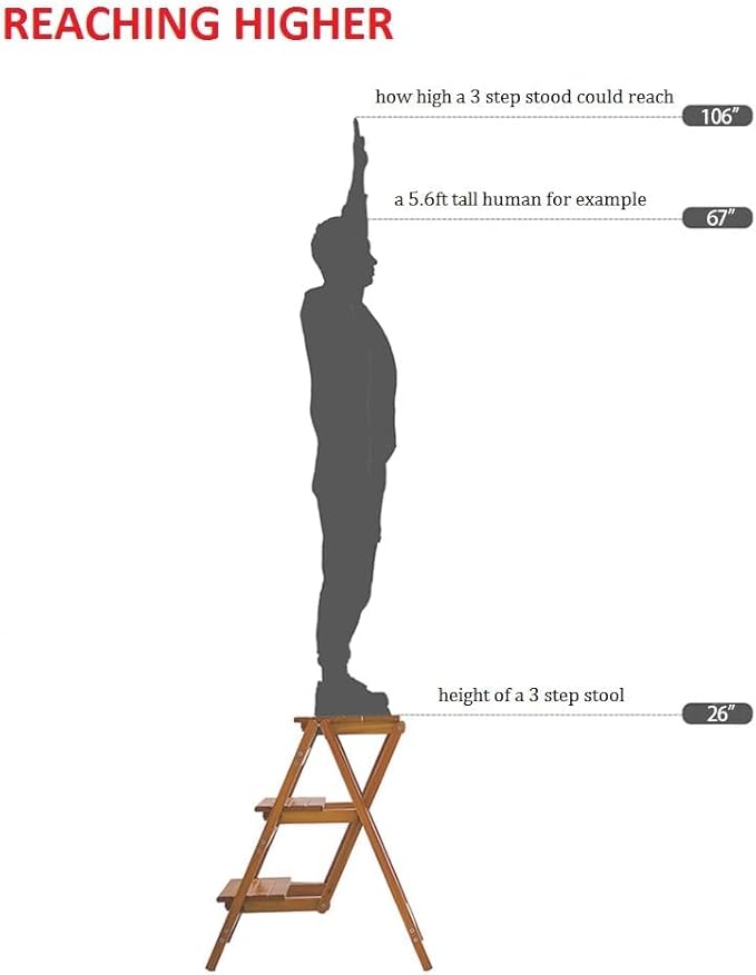 • ②SPACE SAVING - This portable stool’s space-saving design lets you fold the ladder to a compact size for storage. The foldable stool only 3.5 inches (9cm) thick once folded and can be stored in any corner. this step ladder is convenient storage in very narrow places