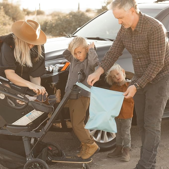 • TRAVEL & DAILY USE ESSENTIAL:Tiny Twinkle’s durable wet bag tackles wet towels, baby feeding bib,7x10 inches portable changing pad,sweaty gym gear, or messy baby items with leak-proof, quick-dry fabric. Use it as a wet bag for gym clothes((holds 5lbs/2.3kg),) wet bag for cloth diapers, or waterproof bag for wet clothes during camping, pool days, or daycare runs. Its machine-washable design and lightweight build make it a travel essential for families and adventurers.