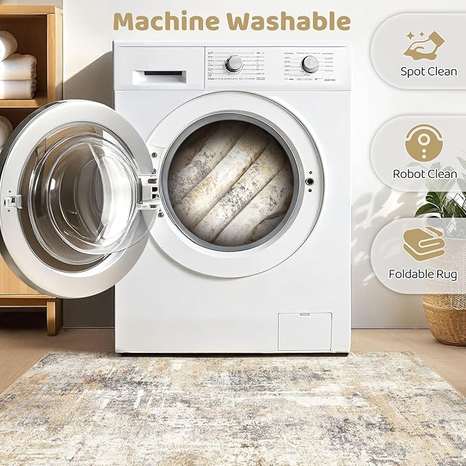 • MACHINE WASHABLE: Our rugs for living room is washable for easy care, directly toss in washing machine in cold water. for minor stains, simply vacuum with a hand-held vacuum or shake off outdoors. for water or coffee stain, wipe with a dry towel promptly