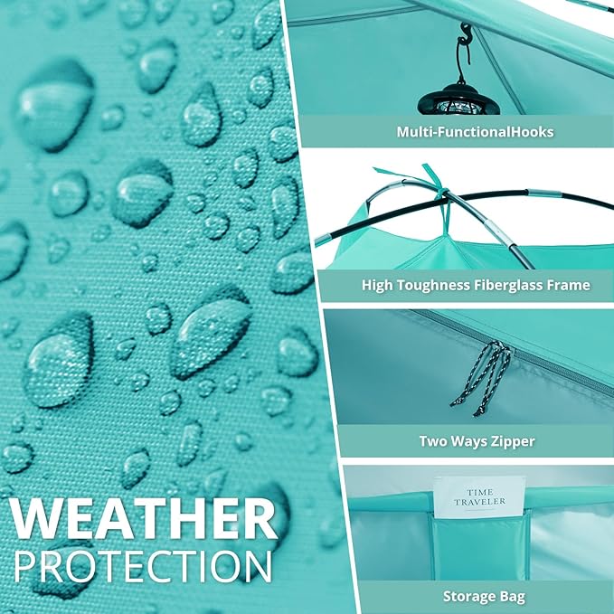 • 🎒【Lightweight and Portable Design】 Weighing only 9 pounds (6-person model), it can be packed into a 47"x8" tote bag - lighter than a beach cooler! The fiberglass poles can be locked in 90 seconds, perfect for car trunks, RV trips or lakeside picnics.