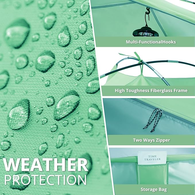 • 🎒【Lightweight and Portable Design】 Weighing only 9 pounds (6-person model), it can be packed into a 47"x8" tote bag - lighter than a beach cooler! The fiberglass poles can be locked in 90 seconds, perfect for car trunks, RV trips or lakeside picnics.