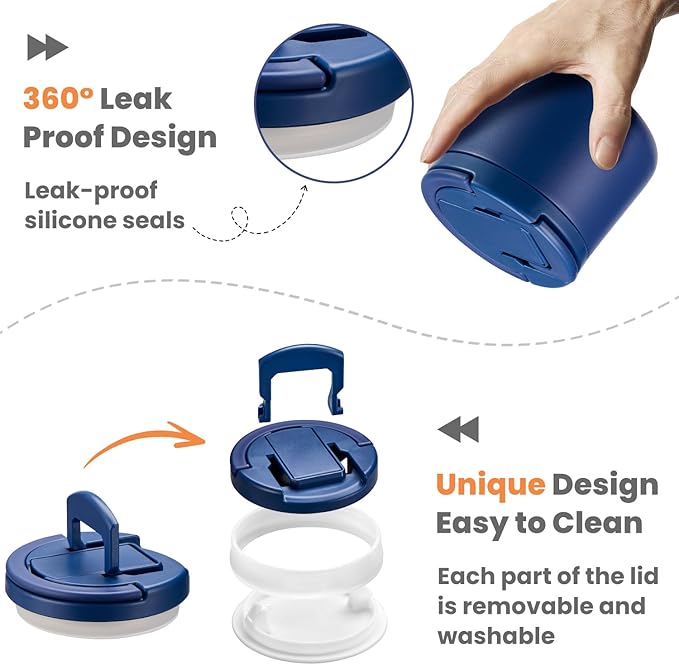 • Use Tips and Notes: In order to keep your food hot or cold for a longer period of time, we recommend preheating/pre-cooling your food or soup in hot/ice water for 5~10 minutes before placing it in the food jar. Note, when you remove the lid for cleaning and then re-installing, q please follow the installation steps in the picture, when installing the buckle please squeeze the top and bottom part of the lid with your hand to utilize the installation.