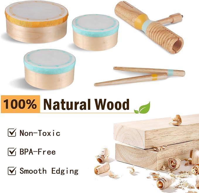• Safe Montessori Musical Toy for Toddlers 1-3: Our baby drum set is the best baby wooden toys for kids 3+, being 100% BPA-free, safe, non-toxic, easy to clean.All of baby items have passed the most stringent CPC/ASTM, Educational toys for 1-2-3-4-5 year old boys and girls.
