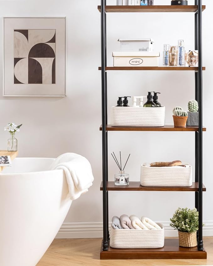 • [ Elegantly Designed to Match Any Décor ] Our small rope basket creates a minimalist appearance, and it adds a touch of warmth and texture to any room. The classic solid color design ensures seamless integration with your existing aesthetics, complementing any decoration. Perfect as decorative storage baskets for shelves, cabinets, and any open display space, making them a stylish and practical addition to any decor, enhancing the overall aesthetics of your room