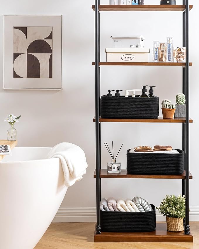 • [ Elegantly Designed to Match Any Décor ] Our small rope basket creates a minimalist appearance, and it adds a touch of warmth and texture to any room. The classic solid color design ensures seamless integration with your existing aesthetics, complementing any decoration. Perfect as decorative storage baskets for shelves, cabinets, and any open display space, making them a stylish and practical addition to any decor, enhancing the overall aesthetics of your room