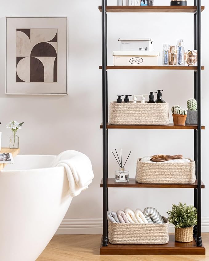 • [ Elegantly Designed to Match Any Décor ] Our small rope basket creates a minimalist appearance, and it adds a touch of warmth and texture to any room. The classic solid color design ensures seamless integration with your existing aesthetics, complementing any decoration. Perfect as decorative storage baskets for shelves, cabinets, and any open display space, making them a stylish and practical addition to any decor, enhancing the overall aesthetics of your room