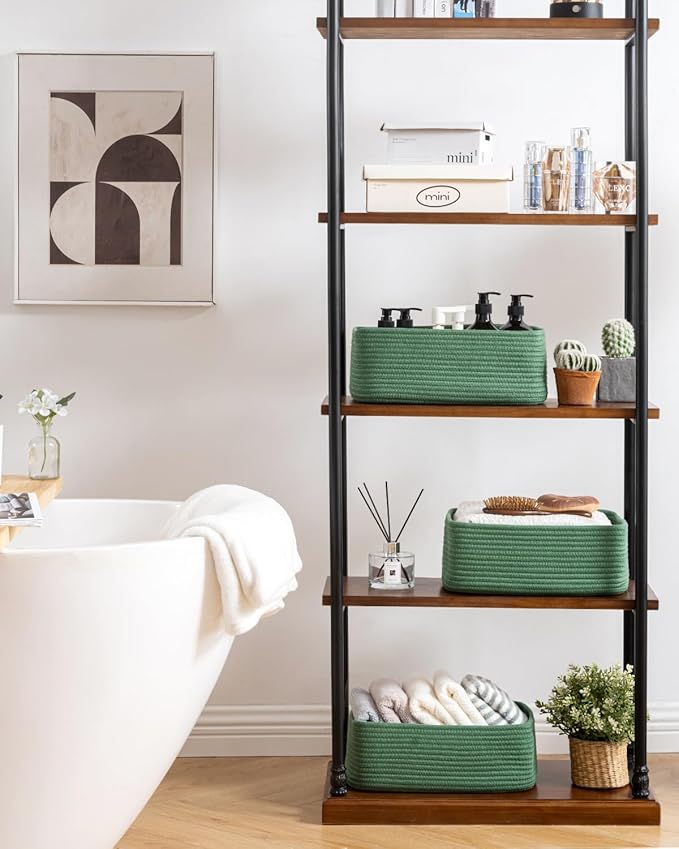 • [ Elegantly Designed to Match Any Décor ] Our small rope basket creates a minimalist appearance, and it adds a touch of warmth and texture to any room. The classic solid color design ensures seamless integration with your existing aesthetics, complementing any decoration. Perfect as decorative storage baskets for shelves, cabinets, and any open display space, making them a stylish and practical addition to any decor, enhancing the overall aesthetics of your room
