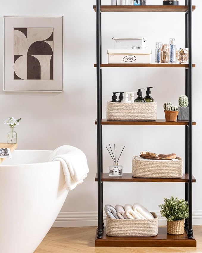 • [ Elegantly Designed to Match Any Décor ] Our small rope basket creates a minimalist appearance, and it adds a touch of warmth and texture to any room. The classic solid color design ensures seamless integration with your existing aesthetics, complementing any decoration. Perfect as decorative storage baskets for shelves, cabinets, and any open display space, making them a stylish and practical addition to any decor, enhancing the overall aesthetics of your room