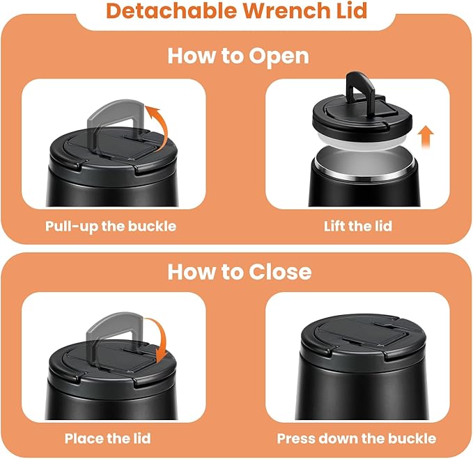 • New Buckle of Lid: The food containers feature a press-seal construction, allowing you to simply pull the handle upwards to 90° to open the lid/ 90° downward closure. This design is maintaining vacuum no need to rotate the lid open . Additionally, the container comes equipped with a carrying handle, making it convenient for your child to carry it. Whether at school, an outdoor outing, or a family gathering, this user-friendly design empowers children to confidently enjoy their delicious meals.