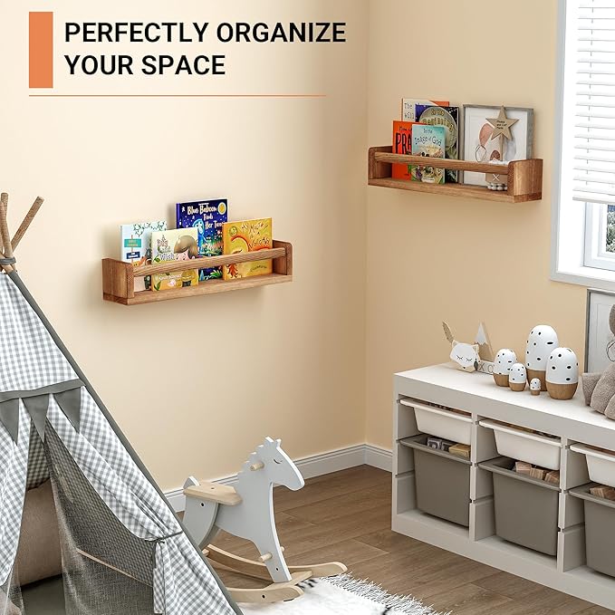 • [Ample Storage Space] - Measuring 16.5 inches, these nursery shelves offer ample room for organizing children's books, toys, photos, and other small items. They encourage a love for reading while keeping spaces tidy. With 0.6” thicken panels, each bookshelf can hold up to 30 LBS