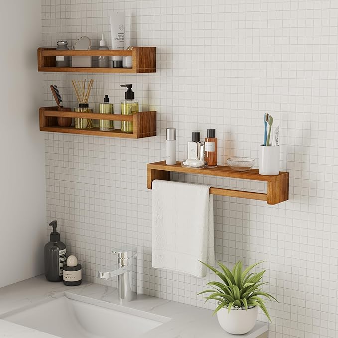 • [Versatile Nursery Shelves] - Heimlove floating shelves offer two installation options, allowing you to mount them either upwards or downwards, effortlessly adapt them to fit any space or aesthetic.They are perfect as a chic bookshelf for a nursery, a display shelf for the living room, or a spice rack for the kitchen.