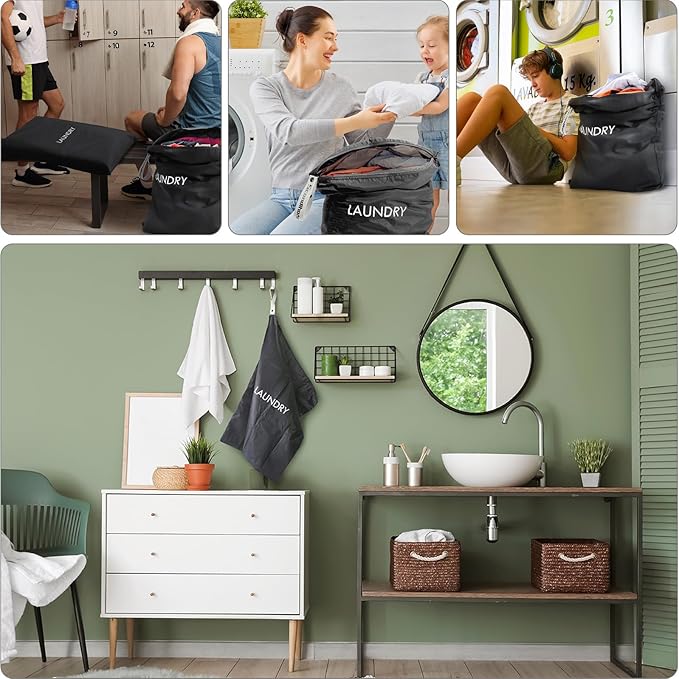 • Side Grip & Zipper: The dirty clothes travel bag with zipper design is easy to open and close, zipper slides smoothly without getting stuck and can withstand frequent use. It also has a Side Grip design for easy carrying and can be hung on suitcases, door handles, or hooks without taking up more space.