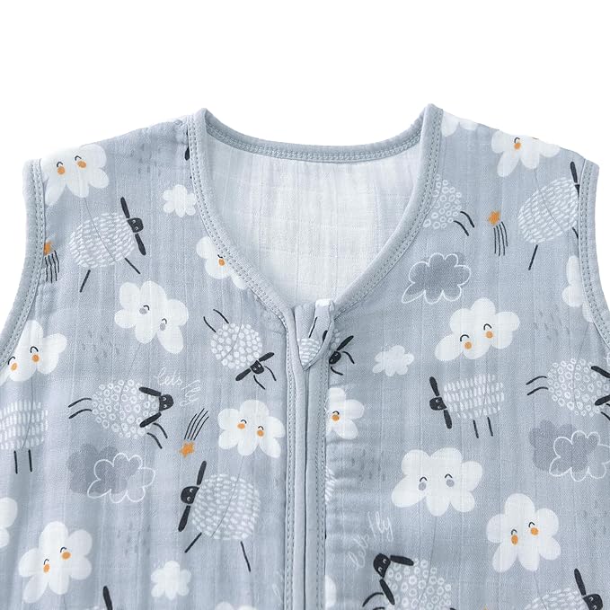 • Safe and Simple Design: The double-way zipper(YKK) design facilitates easy dressing and diaper changes, and the safety tab safeguards your baby's delicate chin. The roomy sack design provides greater mobility for better sleep, and the sleeveless design helps prevent overheating