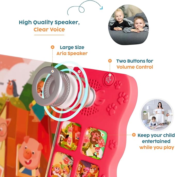 • 9 Full-Length Songs for Lasting Fun: Enjoy 9 enchanting songs, each lasting 40-70 seconds—perfect for keeping young minds engaged. Unlike typical sound books with brief tunes, this baby book with sounds features extended songs with lively vocals and a real child’s voice, encouraging rhythm, focus, and attention. Ideal as a talking book or for families exploring musical books for toddlers 3-5 or tools to learn English for kids.