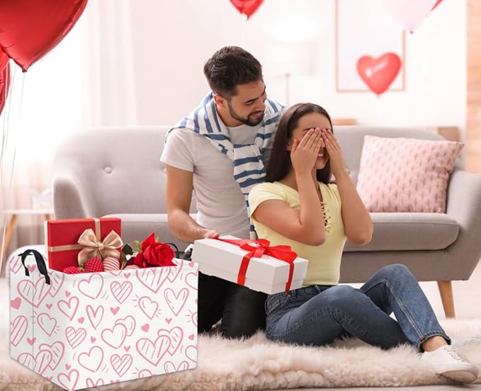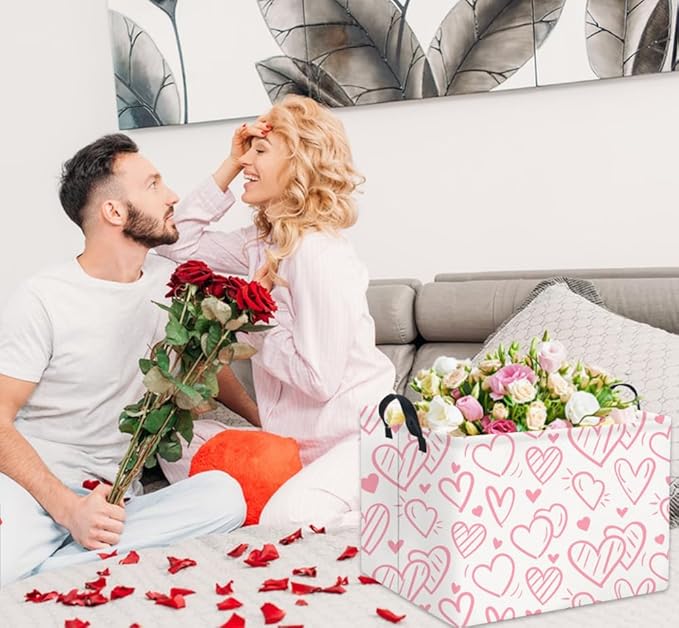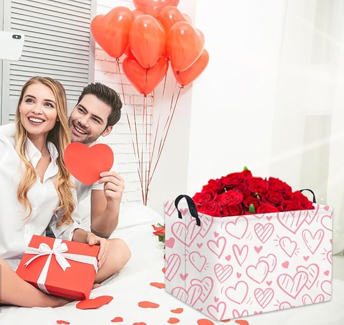 • MATERIAL:The valentines day basket basket is made of durable canvas &The inner lining is made of waterproof fabric; sturdy metal rod frame around the top keep the basket shape.