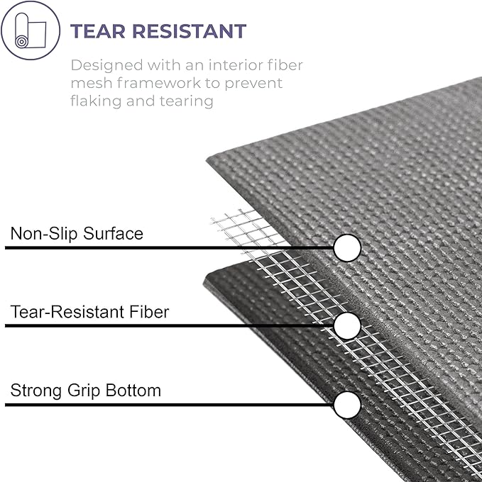• Non-Slip: The fitness mat features a textured surface for stability and balance when changing or maintaining poses; created with an interior fiber mesh layer to reduce mat stretch and resist tears for longevity