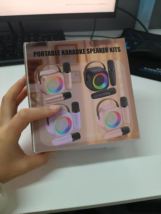 • 【Wonderful Gifts for Girls Boys】Compact and portable, powerful and stylish, make it a cool toy for teen boys and girls. It’s a wonderful holiday, birthday, Christmas, Easter, Valentine, Halloween, Thanksgiving and New Year gift for kids and teens. With this mini karaoke machine, everywhere is stage. Package includes a karaoke machine, 2 wireless hand-held microphone, a charging cable and a user manual.