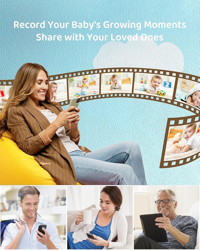 • Remote Pan-Tilt-Zoom:The baby monitor with camera and night vision cover every angle with its 355 degree pan and 60 degree tilt and digital 4 X zoom in/out feature, you can remotely watch your baby more closely via your cellphone App and LCD screen