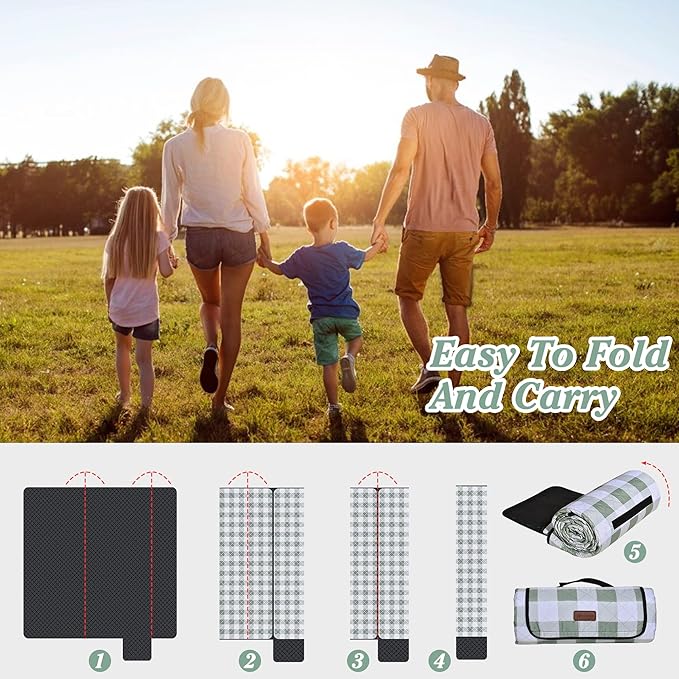 HX&OD Outdoor Picnic Blanket, Extra Large, 80''x60'' Waterproof Foldable Blankets Gingham Picnic Mat for Beach, Camping Grass Lawn Park Accessories Cute Couple Ideas Wedding (Green, 80”x60”)