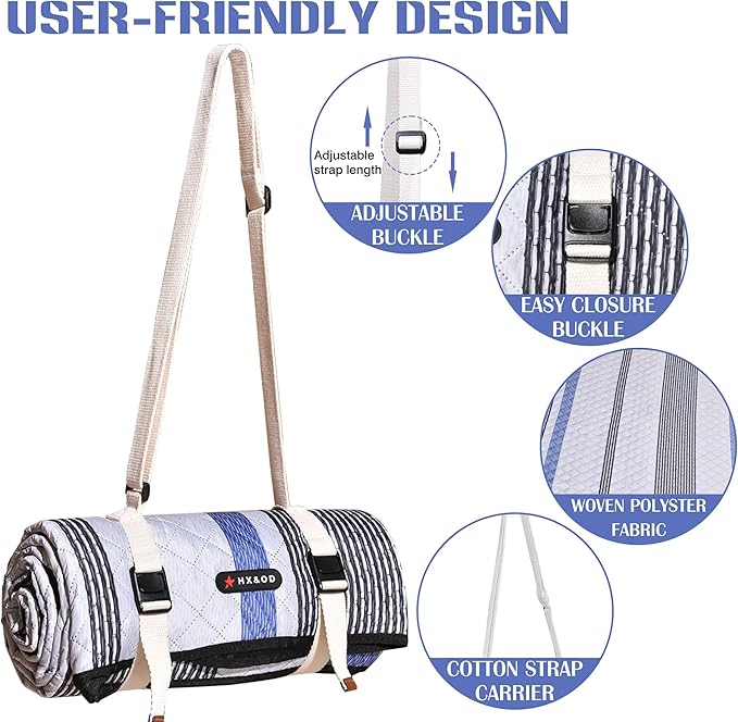 • CONVENIENT STORAGE AND PORTABLE: The camping blanket comes with a storage strap for quick folding and storage. And with stretchable shoulder strap. The process of traveling to the campsite or after the camping is over can free your hands. VERY CONVENIENT