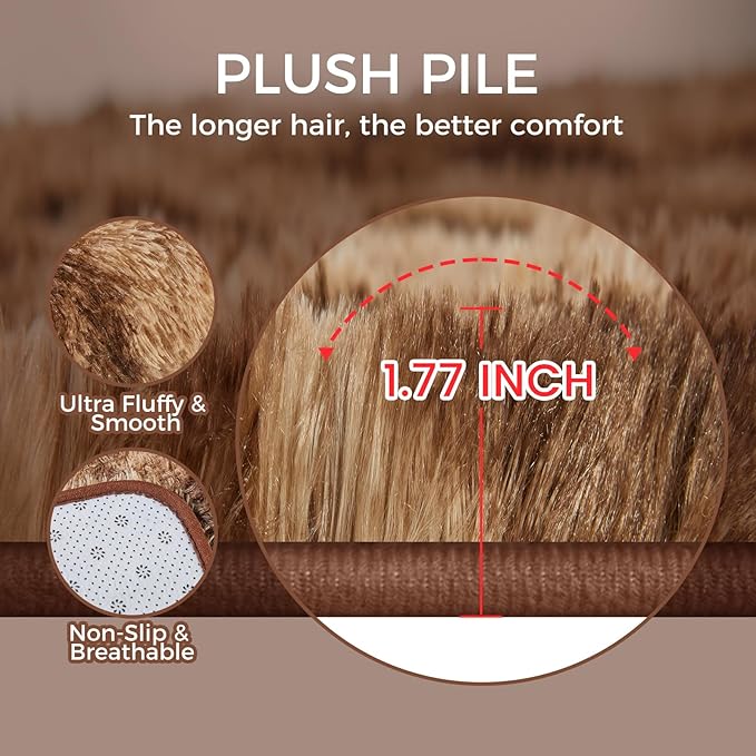 • Easy To Clean - We recommend that you can directly shake off the impurities on the surface of the shaggy rug or use a vacuum cleaner for daily cleaning. For deep stains, you can choose to wash by hand . After cleaning, place it in a ventilated place to air dry. Note: Vacuum packed, please lay flat and will fluff up back in 2-3 days.