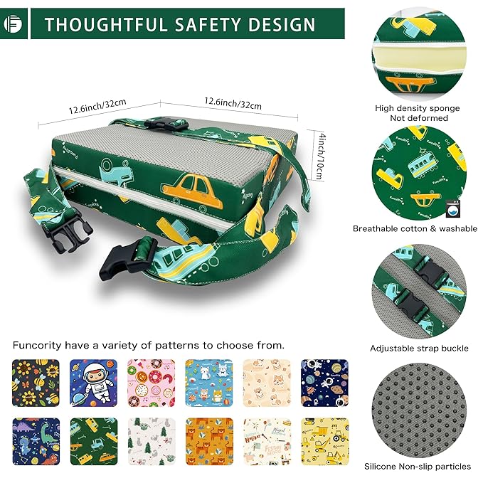 • 【Colorful and Fun Design】-Featuring vibrant and playful patterns, this booster seat for toddlers adds joy to mealtime and encourages independent eating, keeping children engaged and comfortable.