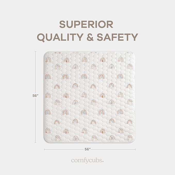 Comfy Cubs Square Kids Play Mat - 56 x 56 inches Soft Quilted Baby Floor Mat with Non-Slip Bottom - Plush Design for Toddlers' Playtime and Relaxation - Comfortable and Durable - Rainbow