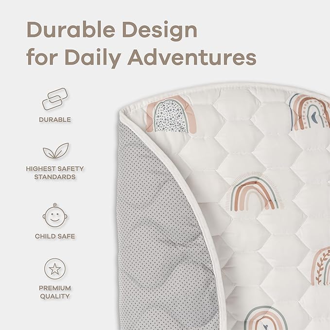 • Quilted for Extra Padding: This thick baby play mat comes with a quilted top providing added cushioning, making it more comfortable for your child to roll, crawl, and play on the mat.