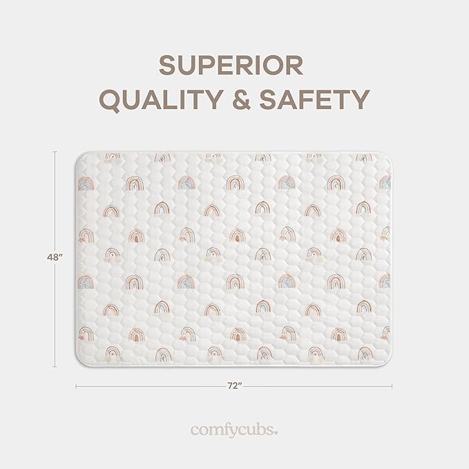 Comfy Cubs Rectangle Kids Play Mat - Medium 48 x 72 inches Soft Quilted Baby Floor Mat with Non-Slip Bottom - Plush Design for Toddlers Playtime and Relaxation - Comfortable and Durable - Rainbow