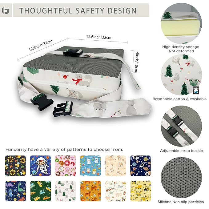 • 【Colorful and Fun Design】-Featuring vibrant and playful patterns, this booster seat for toddlers adds joy to mealtime and encourages independent eating, keeping children engaged and comfortable.