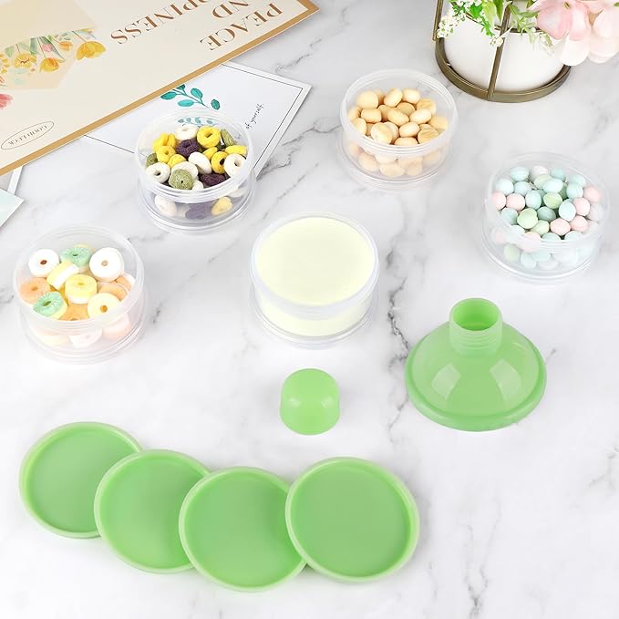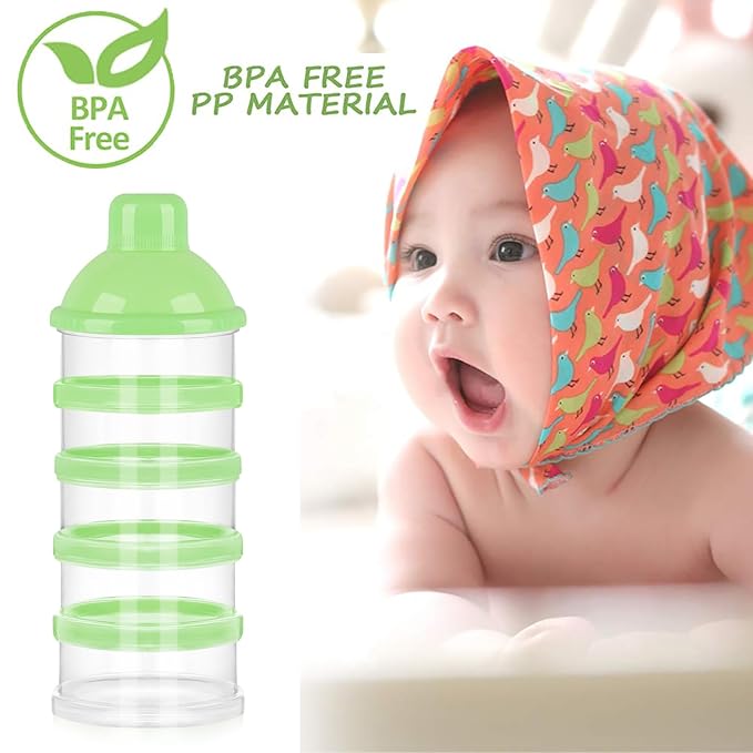 • Capacity - 5 layers design. You can put quantity of baby formula on each layer. A total of 5 layers of pre measured milk powder or food can be placed. Very pratical formula container for on the go.