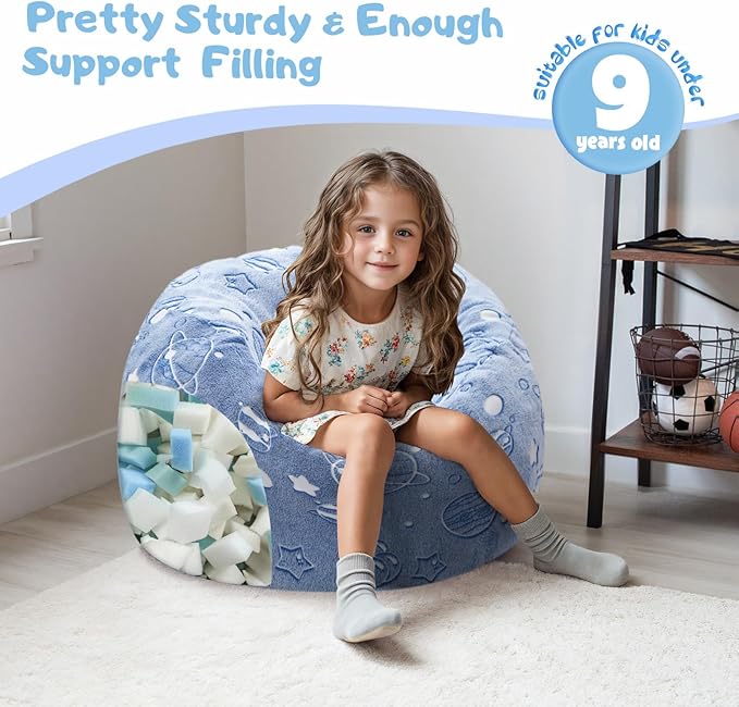 • Kids Bean Bag Chair: This toddler bean bag chair a glowing pattern. Expose the fluffy bean bag chair to sunlight or light during the day, the small bean bag with a soft glow adds a touch of wonder to any kids' room at night