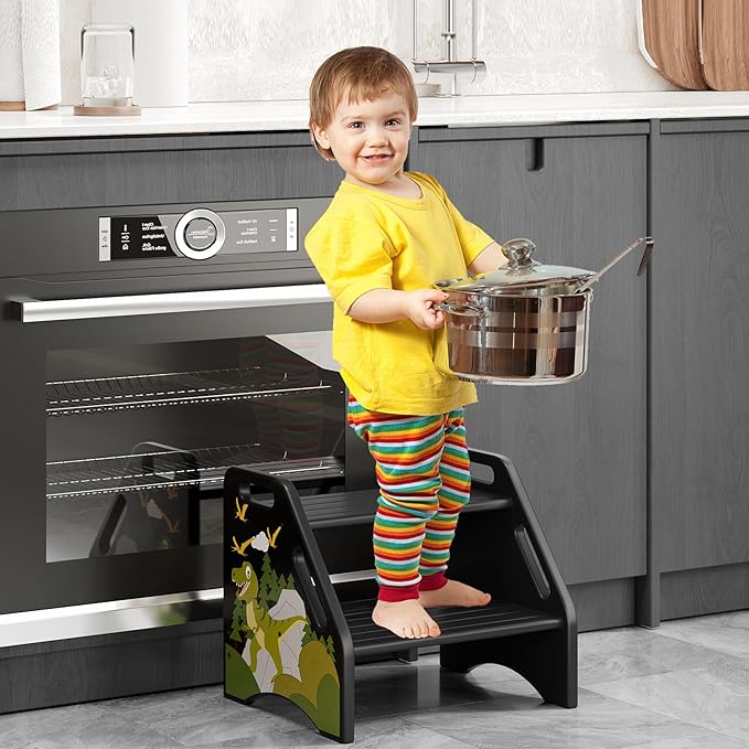 • Independent Helper: The kids step stool is an excellent tool for developing your child's independence; According to the Montessori philosophy, children are better able to develop self ability and self-confidence by completing tasks on their own; Whether it's reaching the sink to brush their teeth, wash their hands, or potty training, this 2 step stool will help children take care of themselves and become little independent
