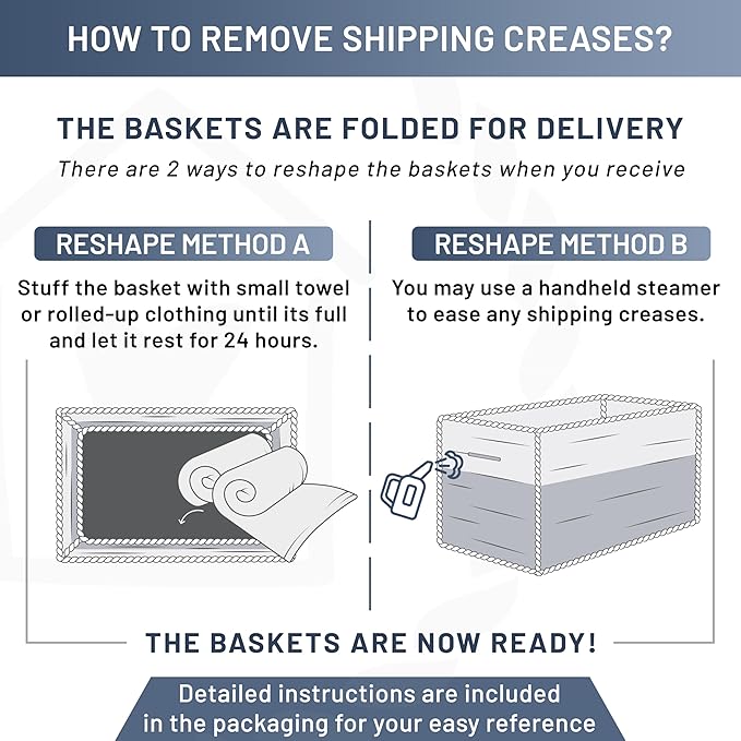 • Say Goodbye to Wrinkly Floppy Woven Baskets: No more dealing with permanently creased, flimsy storage basket, unlike others our rope basket stays firm and structured. With our unique folding method and quality rope, shaping is easy with our instructions!