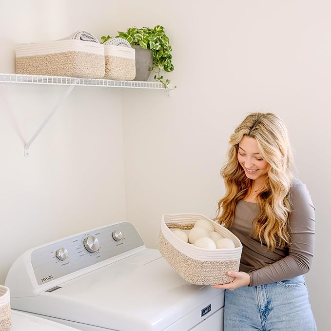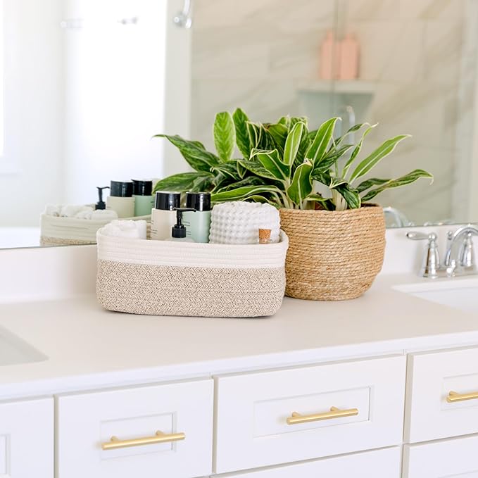 • Safe, Natural Cotton Organizer Bins: Crafted from the highest quality material in the market, our storage bins are oh-so-sturdy (and cute) and ready to take on little humans. They’re 100% safe, so you can rest easy if teething toddlers take a nibble. Reinforced Hidden Handles: Now you see ‘em, now you don’t! With completely hidden handles that blend seamlessly into the rope basket, you’ll be the Houdini of home organizing. They’re even double-stitched and reinforced for extra heavy loads!