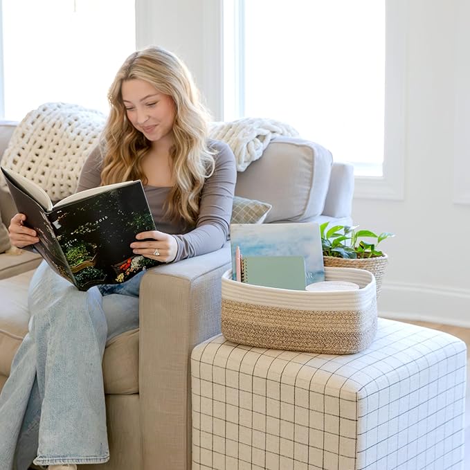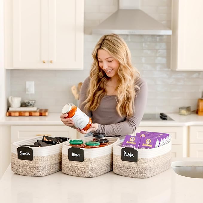 • Safe, Natural Cotton Organizer Bins: Crafted from the highest quality material in the market, our storage bins are oh-so-sturdy (and cute) and ready to take on little humans. They’re 100% safe, so you can rest easy if teething toddlers take a nibble. Reinforced Hidden Handles: Now you see ‘em, now you don’t! With completely hidden handles that blend seamlessly into the rope basket, you’ll be the Houdini of home organizing. They’re even double-stitched and reinforced for extra heavy loads!