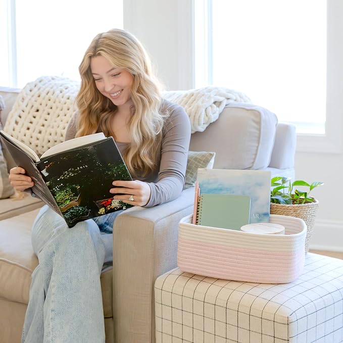 • Safe, Natural Cotton Organizer Bins: Crafted from the highest quality material in the market, our storage bins are oh-so-sturdy (and cute) and ready to take on little humans. They’re 100% safe, so you can rest easy if teething toddlers take a nibble. Reinforced Hidden Handles: Now you see ‘em, now you don’t! With completely hidden handles that blend seamlessly into the rope basket, you’ll be the Houdini of home organizing. They’re even double-stitched and reinforced for extra heavy loads!