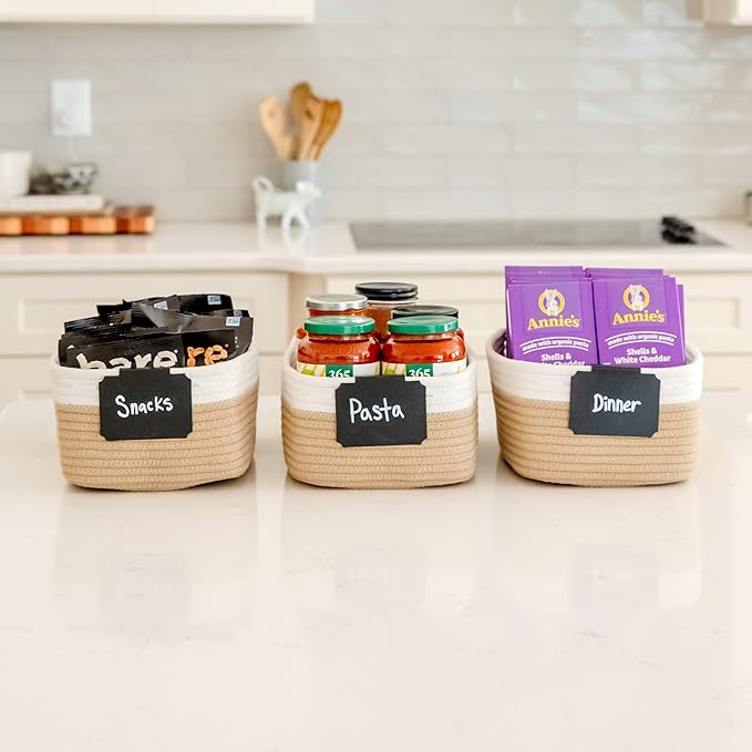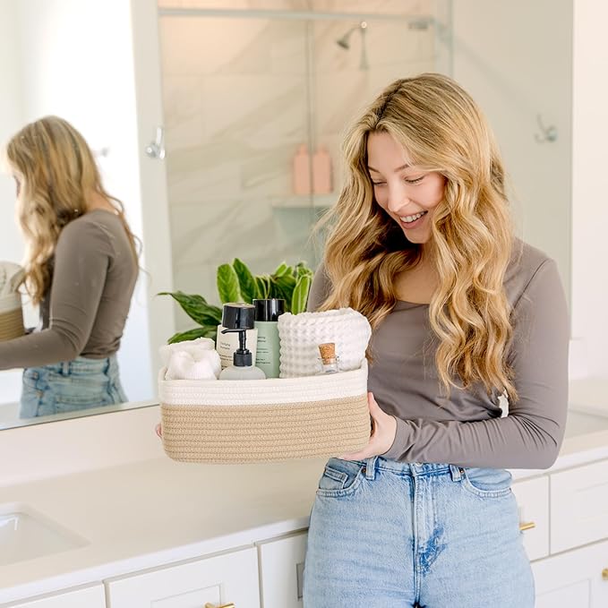 • Safe, Natural Cotton Organizer Bins: Crafted from the highest quality material in the market, our storage bins are oh-so-sturdy (and cute) and ready to take on little humans. They’re 100% safe, so you can rest easy if teething toddlers take a nibble. Reinforced Hidden Handles: Now you see ‘em, now you don’t! With completely hidden handles that blend seamlessly into the rope basket, you’ll be the Houdini of home organizing. They’re even double-stitched and reinforced for extra heavy loads!
