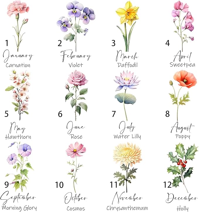• Elegant Birth Month Mug: Each mug features the birth month flowers and names adding a beautiful botanical touch personalized for each individual.