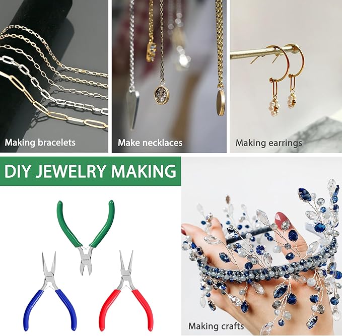 • COMPLETE JEWELRY MAKING KIT: This set of 3 small jewelry pliers is an ideal tool for charm necklaces, beading, jewelry repair, wire wrapping, and rosary making. It's suitable for both beginners and professionals and makes a great gift for DIY enthusiasts and craft lovers. With these high-quality WORKPRO jewelry making tools, you'll be able to create beautiful jewelry pieces with ease