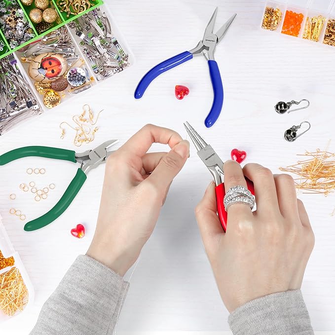 WORKPRO Jewelry Pliers Set, 3 Pack Jewelry Making Tool Kit- Needle Nose Plier/Chain Nose Plier, Round Nose Plier and Wire Cutter for Charm Bracelet, Jewelry Repair, DIY Crafts, Jewelry Making Supplies