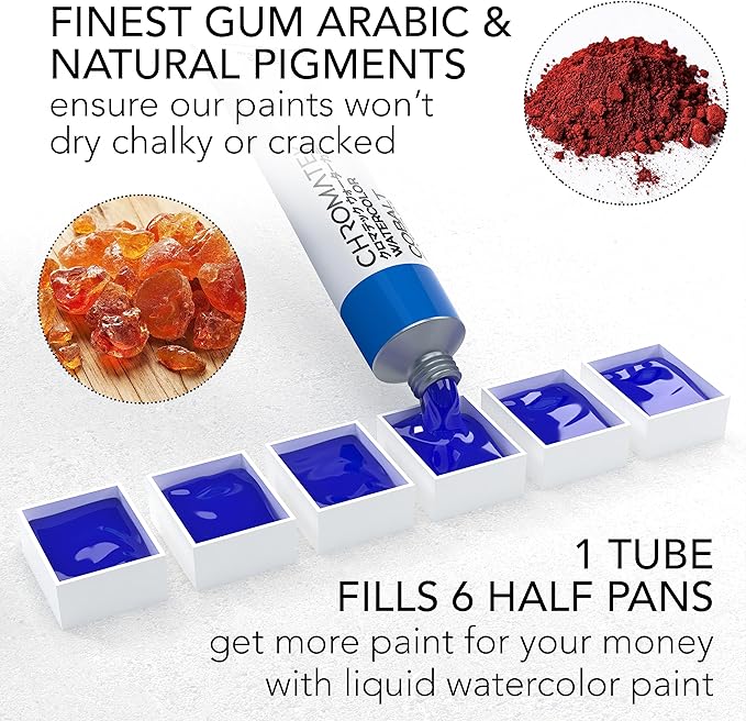 • CONTROL YOUR PAINT USAGE WITH NO WASTE: Unlike watercolor pans, these watercolor paint tubes allow for precise control over how much paint is used. The smooth consistency prevents clumping and makes it easy to mix custom shades, ensuring the perfect amount of color for every project.