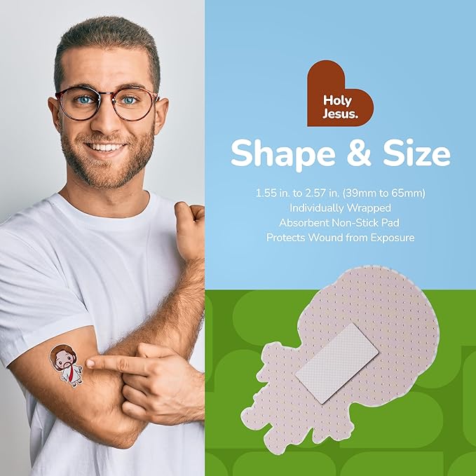 • SAFE PACKAGING: These sterile Holy Jesus bandages come in cute and adorable packaging, and are individually wrapped for safe handling; small bandages help protect kids' sensitive wounds from coming into contact with dirt for first aid wound care