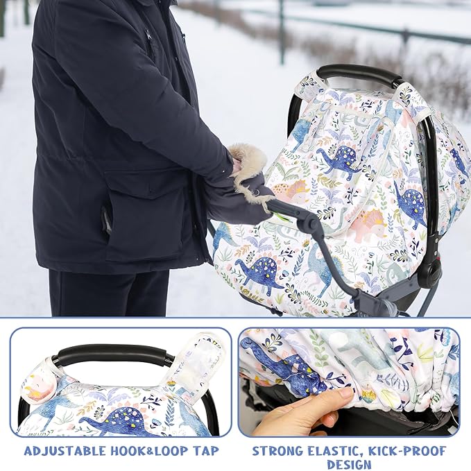 • Durable 2 Layers Design: The Pea Pod car seat cover has 2 layers of windows. With one mesh window with zipper closure, moms can see babies and the baby can stay in a more ventilated car seat cover; One polyester fabric window, can avoid the wind and prevent strangers from peeking at the baby. Providing secure independence to the baby