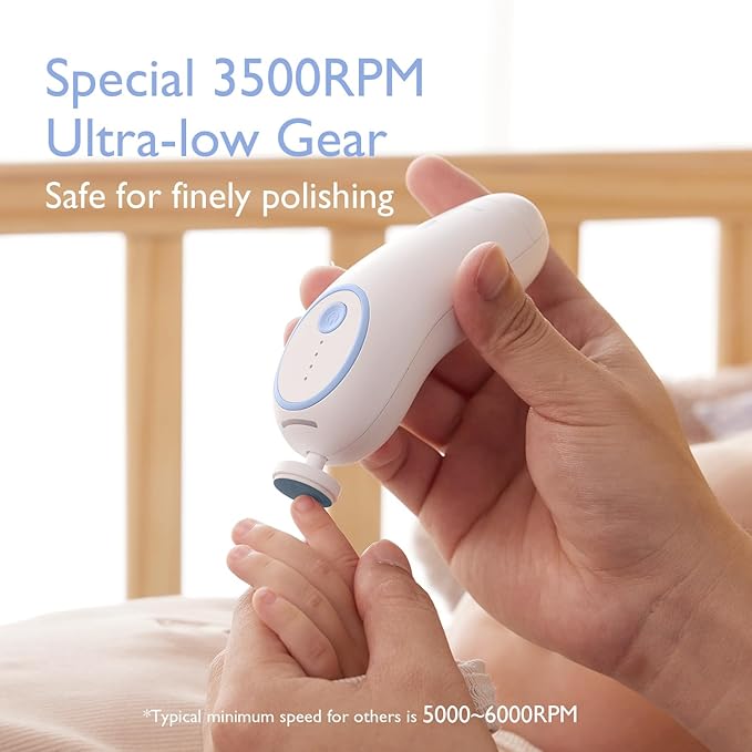 • Low Noise - The noise of our nail filer is below 35dB in gear 1, to provide a gentle grooming experience for the baby, doesn't frighten the baby, suitable for use when the baby is asleep