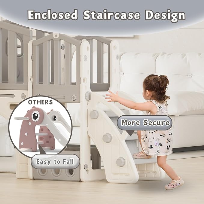 • Safety First Design: Our kids slide is thoughtfully designed with safety as the top priority. It features enclosed stairs, gentle slopes, sturdy construction, and smooth edges, ensuring peace of mind for both children and parents during playtime.