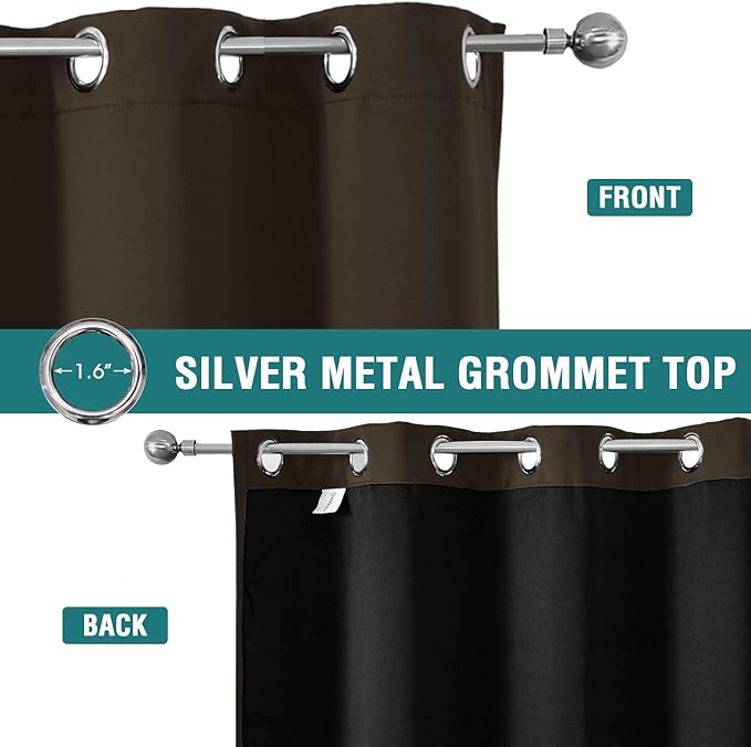 ChrisDowa 100% Blackout Curtains 72 inch Long for Bedroom with Black Liner, 2 Thick Layers Total Blackout Thermal Insulated Grommet Window Curtains 2 Panels Set (Brown, 42 x 72 Inch)